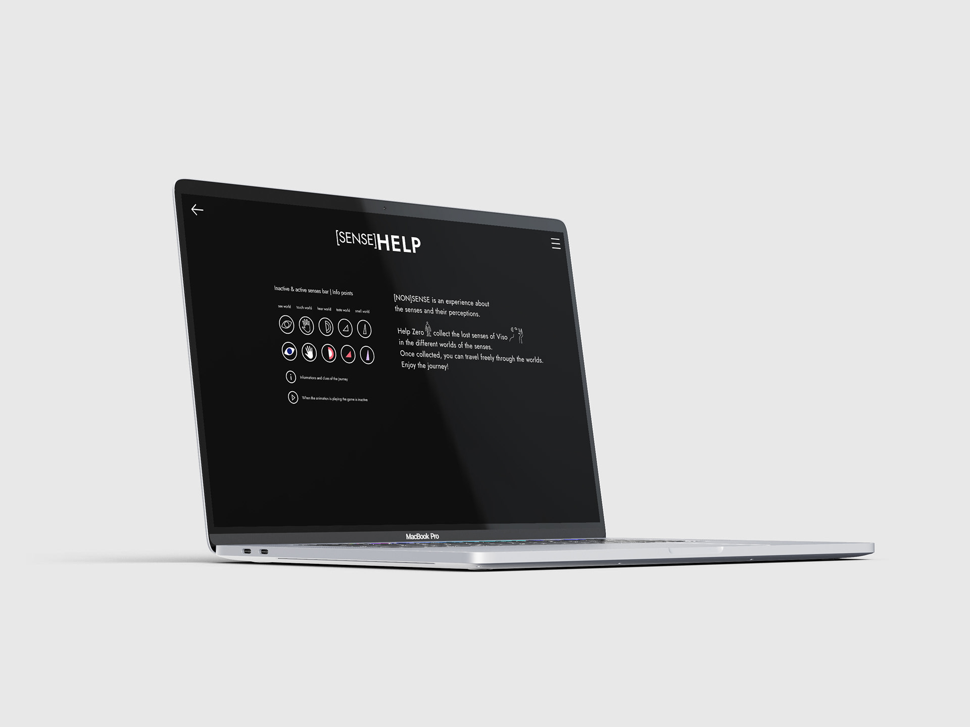 For the bachelor thesis in animation we created the game [NON]SENSE. [NON]SENSE is an immersive experience of a journey through our senses and their different perceptions. Regie, idea, visuals, animation: Giulia Faccini & Sagara Hirsch | 2023